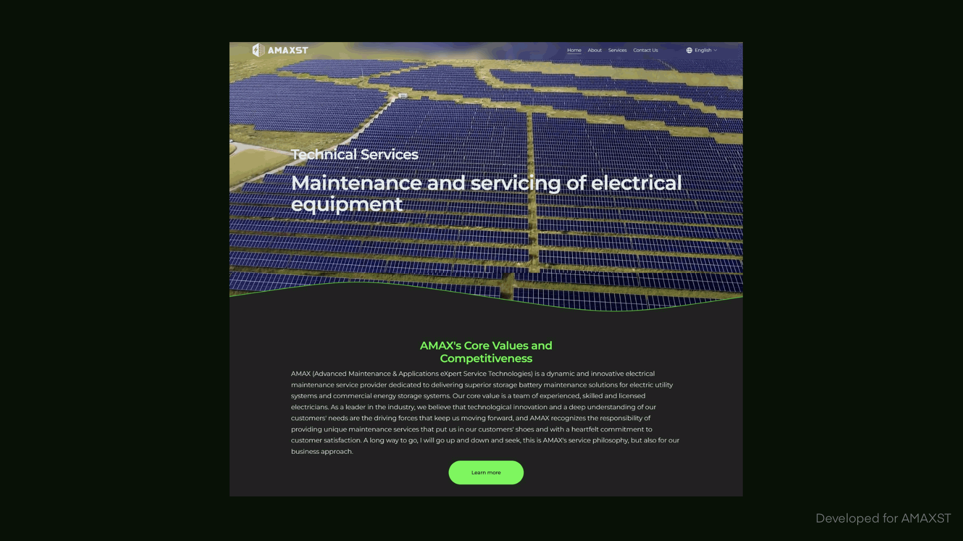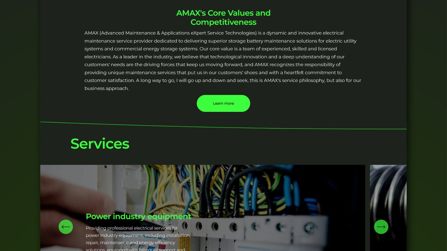 Amaxst is a technology company specializing in smart energy solutions. The original website lacked visual consistency and clear hierarchy, which made it difficult for users to understand the company’s services and technological strengths.